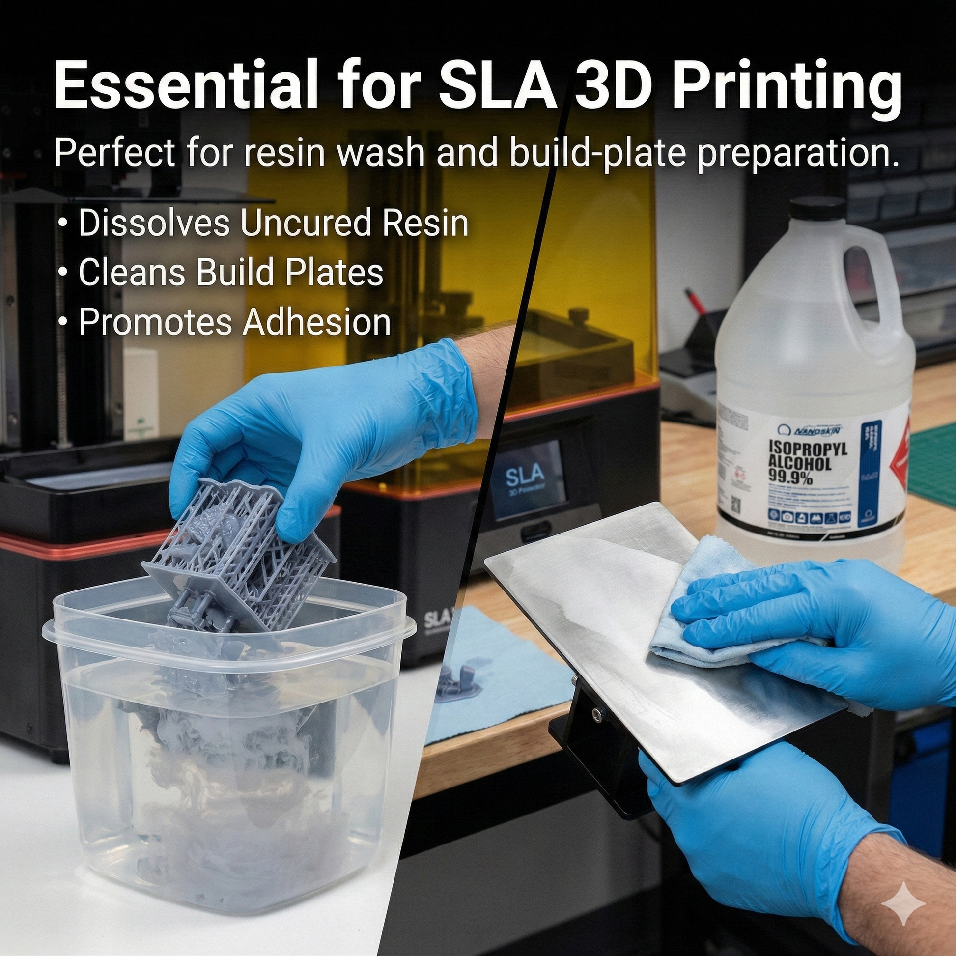 In electronics assembly and repair it lifts flux, fingerprints and skin oils from printed-circuit boards, connectors and sensors, flashing off in seconds to leave components spotless and ready for conformal coating or immediate re-use. Optics technicians rely on the same fast-drying action to clear dust and smudges from lenses and mirrors without streaks or haze, while additive-manufacturing operators use it as a primary wash for uncured SLA resin and as a build-plate prep that promotes reliable first-layer adhesion. In laboratories and production lines the solvent’s strong affinity for hydrocarbons lets it dissolve greases, uncured polymers, inks and light oils on contact, streamlining QC protocols, paint-prep, and auto-detailing wipe-downs of chrome, stainless and glass.