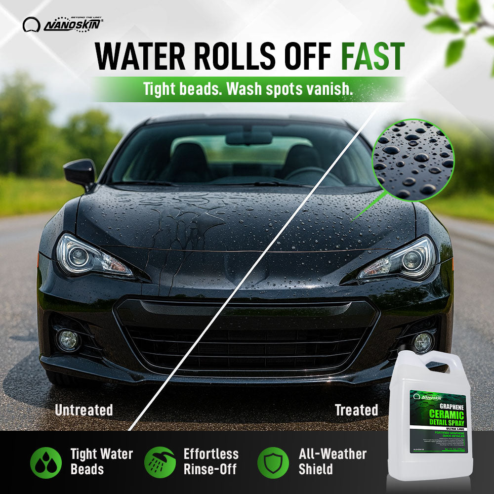 1. After vehicle has been rinsed and still dripping wet, mist each panel, glass and plastics.