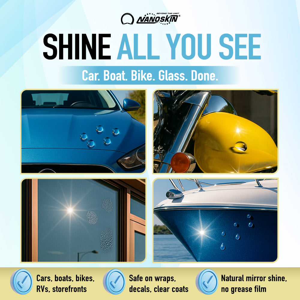![]() Spread and wipe dry Hydro Express on glass surface. |