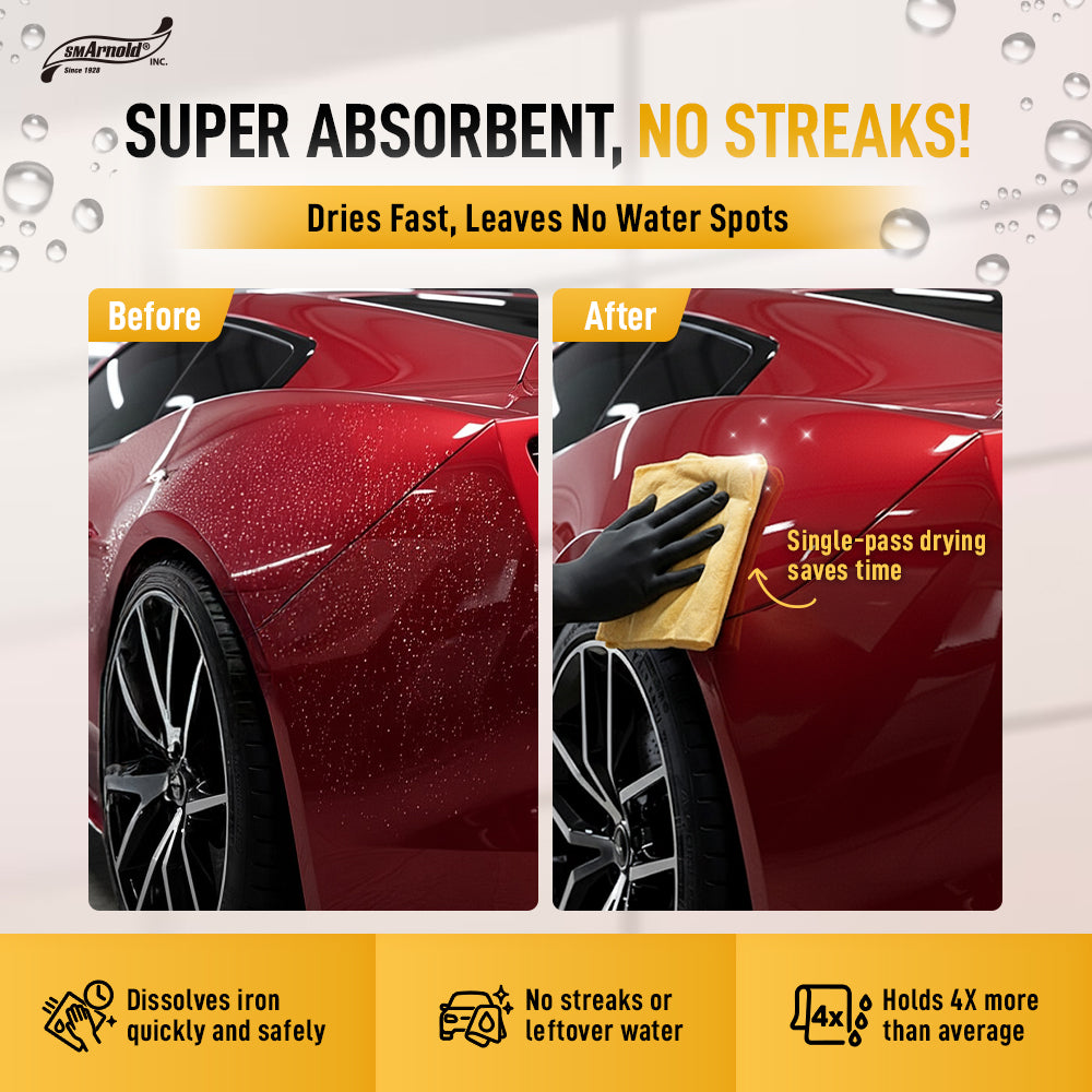 ✅ ABSORBS DIRT & GRIME: This professional-grade drying cloth effectively lifts residual dirt and grime away from surfaces, leaving them clean and dry. Safely removes micro iron particles and grease without scratching paint, coatings, or other delicate surfaces.