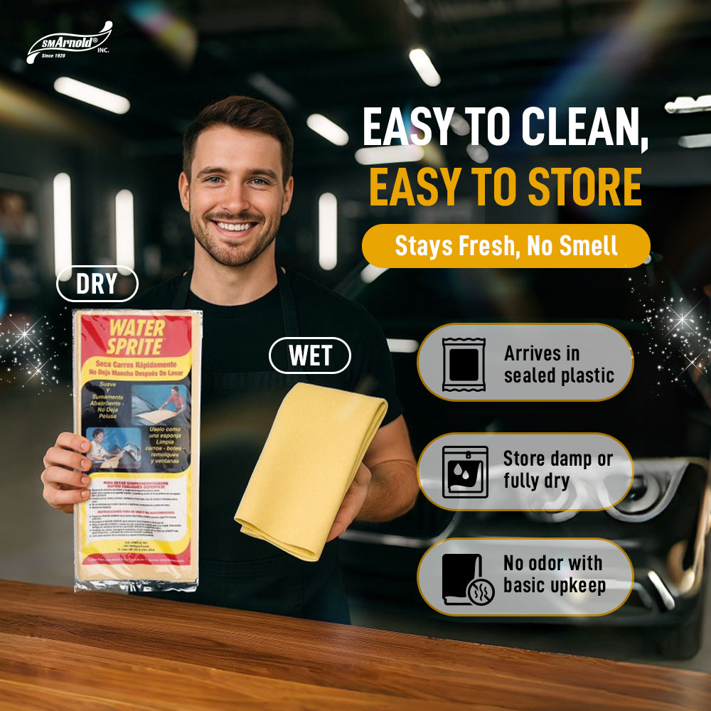 ✅ FAST DRYING: Water Sprite's exclusive PVA material gently cleans and dries fine finished surfaces, ensuring quick, spot-free drying for any surface. Perfect for speeding up the drying process after washing cars, leaving a brilliant shine.